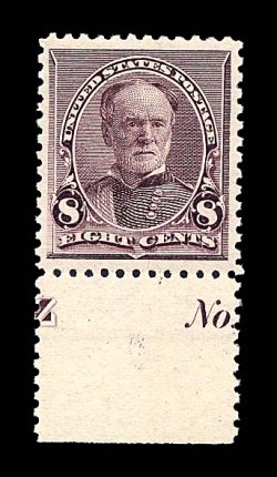 1364 nh 225 image#225, 8c Lilac, an extraordinarily choice bottom sheet-margin single, featuring unusually large and well balanced margins all around, rich color and a crisp prooflike impression, immaculate o.g. without a single gum bend or skip, n.h., extremely fine gem; a stamp for the demanding condition conscious collector; 2004 PF certificate. (Image) 160.00