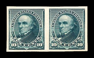 1369 nh 226a image#226a, 10c Green, imperforate, horizontal pair, uniformly large and well balanced margins, deep luxuriant color, o.g., n.h., extremely fine; particularly scarce in this immaculate condition; 1991 PF certificate; ex-Floyd. (Image) for hinged 325.00