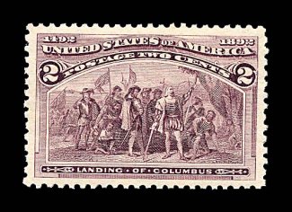 1380 nh 231 var. image#231 var., 2c Columbian, "broken hat" variety, wonderfully bright and fresh, rich color, well centered within large margins, o.g., n.h., extremely fine. (Image) 130.00