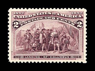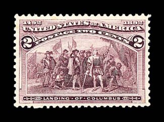 1376 nh 231 image#231, 2c Columbian, impressive mint example, possessing extravagantly large and uniformly balanced margins, bright fresh color and a razor-sharp impression on immaculate paper, pristine o.g., n.h., extremely fine gem; definitely not your typical quality Two Cent Columbian; 2004 PF certificate. (Image) 45.00