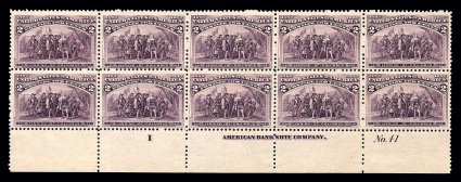 1378 nhPB 231 image#231, 2c Columbian, bottom margin imprint, letter "I" and plate "No. 41" block of twelve, bottom row very well centered, strong rich color, o.g., never hinged, very fine overall. (Image) $860.00+