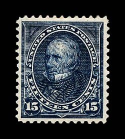 1450 og 259 image#259, 15c Dark blue, an extraordinarily handsome and choice mint example, possessing outstanding centering amid large margins, sumptuously rich color and impression on bright paper, o.g., lightly hinged, extremely fine; 1981 PF certificate. (Image) $325.00