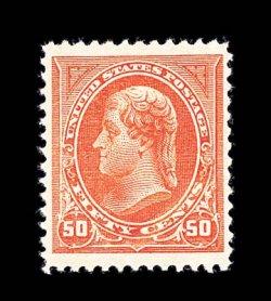 1453 og 260 image#260, 50c Orange, marvelously well centered mint single, extra-large margins that are considerably larger than typically encountered on this difficult value, deep strong color, o.g., lightly hinged, faint natural wrinkle, otherwise extremely fine; clear 1985 PF certificate. (Image) $575.00