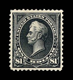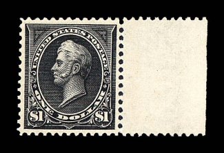 1455 og 261A image#261A, $1.00 Black, Ty. II, a highly select mint example, being a right sheet-margin copy in a particularly pristine state of preservation, with strikingly intense color and a deeply etched impression on unusually bright paper, outstanding centering as well, with large well balanced margins all around, uniformly even and intact perforations all around, full clean o.g. that has been lightly hinged, an extremely fine gem in every regard; 1999 PF certificate. (Image) 2,300.00