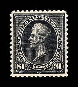 1456 og 261A image#261A, $1.00 Black, Ty. II, an incredibly well centered mint example of this truly rare Bureau issue, with unusually large and well balanced margins all around, possessing intense rich color and a deeply etched impression on bright paper, full o.g., extremely fine; an exceedingly handsome example of the One Dollar Type II unwatermarked Bureau issue that is rarely found so choice;1984 PF certificate. (Image) $2,300.00