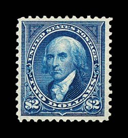 1459 og 262 image#262, $2.00 Bright blue, a most impressive mint example of this scarce stamp, being exceedingly well centered within exceptionally large margins, deeply rich color and a crisp detailed impression, o.g., extremely fine; an especially difficult stamp to find this well centered and margined; 2004 PF certificate. (Image) $3,250.00