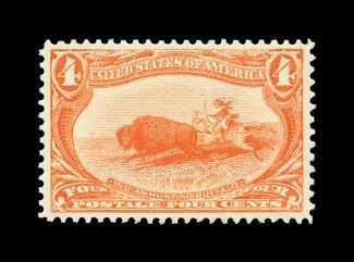 1496 nh 287 image#287, 4c Trans-Mississippi, gorgeous mint single, being wonderfully well centered within large margins, brilliant color and an especially vivid impression, pristine o.g., never hinged, extremely fine gem; 2004 PF certificate. (Image) $325.00