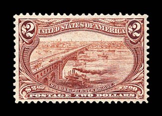 1518 og 293 image#293, $2.00 Trans-Mississippi, exceedingly choice mint example of this notoriously difficult commemorative, possessing outstanding centering amid margins that are uncharacteristically large, exceptionally bright rich color with strong detailed impression, full o.g., relatively lightly hinged, extremely fine; 1982 PF certificate. (Image) $2,100.00