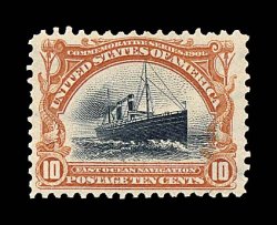 1505 nh 290 image#290, 10c Trans-Mississippi, uncharacteristically well centered for this value, wide margins, sumptuously rich color, pristine o.g., n.h., extremely fine gem; an unusually choice Ten Cent Trans-Mississippi; 1987 PF certificate. (Image) $425.00