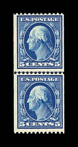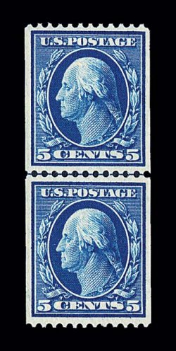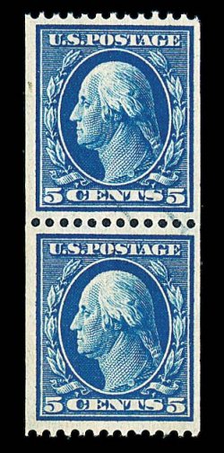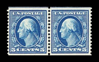 #355, 5c Blue coil, perf. 12 vert. pair,