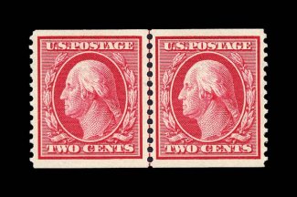 #353, 2c Carmine coil, perf. 12 vert., pair with