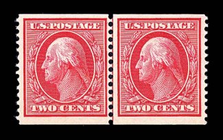 #353, 2c Carmine coil, perf. 12 vert., choice