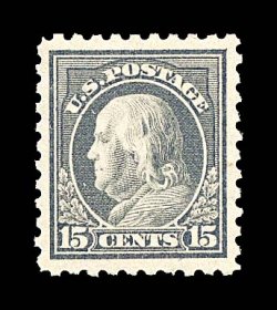 1777 nh 437 image#437, 15c Gray, a most impressive mint example in a quality that would be quite challenging to duplicate, boasting extravagantly large margins all around and being incredibly well centered within them, considerably stronger color and impression than typically found on this value, unblemished o.g. without a single gum bend or skip, n.h., extremely fine; actually a very scarce stamp in this gem never hinged condition; 2000 PF certificate. (Image) 290.00