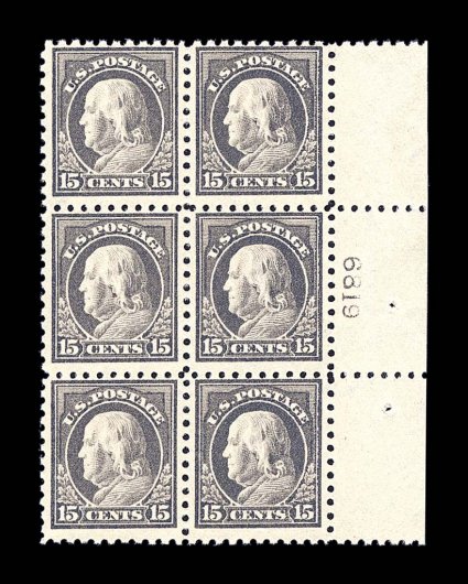 1778 ogPB 437 image#437, 15c Gray, right margin plate no. 6819 block of six, fresh color and paper, o.g., lightly hinged, fine. (Image) $1,125.00