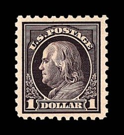 1830 og 460 image#460, $1.00 Violet black, an extraordinarily handsome and choice mint example, featuring incredibly deep and luxuriant color, with a strong detailed impression on bright paper, large well balanced margins, o.g., lightly hinged, extremely fine; 1884 PF certificate. (Image) $850.00