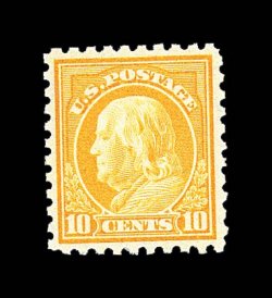 1854 nh 472 image#472, 10c Orange yellow, gem mint example of this particularly challenging value, possessing perfect centering within uncommonly large margins, brilliant radiant color and highly detailed impression, pristine o.g., n.h., extremely fine; scarce in this unusually choice condition; 1984 PF certificate. (Image) $240.00