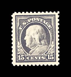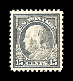 1911 nh 514 image#514, 15c Gray, precisely centered amid extravagantly large margins, especially strong rich color, o.g., n.h., extremely fine; a choice gem; 1996 PF certificate. (Image) $77.50