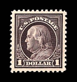 1920 nh 518 image#518, $1.00 Violet brown, excellent centering within uncommonly large margins, strong rich color, unblemished o.g., n.h., extremely fine; 1995 PF certificate. (Image) $105.00
