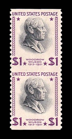 2001 nh 832d image#832d, $1.00 Red violet and black, vertical pair, imperforate horizontally, a nice example of this elusive error, trivial internal wrinkle, o.g., n.h., nearly very fine for this and actually offered less frequently than its first printing counterpart. (Image) $1,500.00