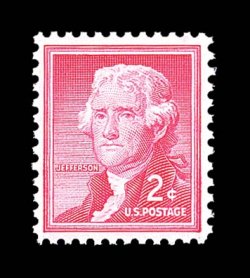2004 nh 1033a image#1033a, 2c Carmine rose, on silkote paper, pristine mint single of this interesting experimental paper variety, well centered, o.g., n.h., extremely fine; a modern day rarity as only 50,000 were printed and sold at the Westbrook, Maine post office, and all but a tiny fraction were used; 1999 PF certificate. (Image) $750.00