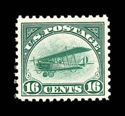 2012 nh C2 image#C2, 16c Green, extraordinarily well centered within large margins, sumptuously rich color and a razor-sharp impression, o.g., n.h., extremely fine. (Image) $140.00