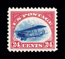 2016 nh C3 image#C3, 24c Carmine rose and blue, brilliantly fresh mint single, with beautifully rich colors on pristine white paper, wonderfully well centered within unusually large margins, o.g., n.h., extremely fine. (Image) $140.00