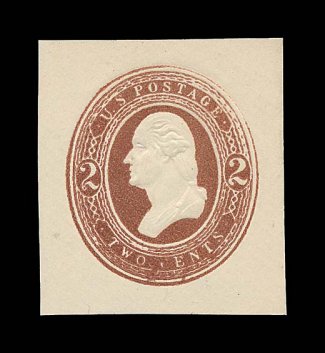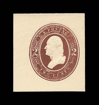 2203 ogc U274 image#U274, 2c Brown on amber, round "O" in "TWO", die 78, size 7, knife 31, wmk. 6, lovely fresh mint entire with sharp edges and corners, deep color with a characteristically overinked impression that is found on this envelope, extremely fine (UPSS #756). (Image) $400.00
