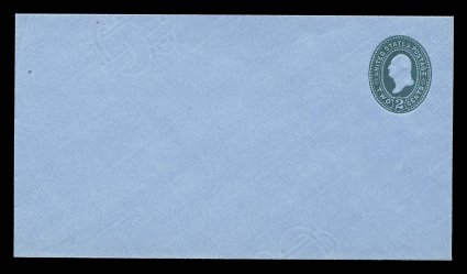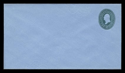 2211 ogc U321 image#U321, 2c Green on blue, die 89, size 13, knife 74, wmk. 7, pristine mint entire, crisp edges and strong embossing with bright color on fresh blue paper, extremely fine and attractive (UPSS #1049). (Image) $300.00