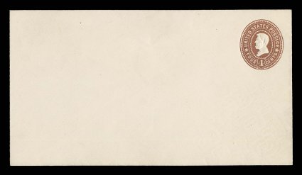2217 ogc U373 image#U373, 4c Brown on white, die 103, size 10, knife 56, wmk. 13, an immensely rare mint entire, being one of only four examples believed to exist in this more desirable small size, in addition this example is in exceptionally choice condition, fresh with rich color on bright white paper, strong detailed embossing, extremely fine and arguably the finest known example; an essential item for an advanced collection of mint entires or for the Lincoln specialist who is seeking a highlight for an exhibit collection (UPSS #1353). (Image) $17,500.00