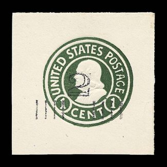 2212 ogc U321 image#U321, 2c Green on blue, die 89, size 13, knife 74, wmk. 7, mint entire, fresh and with crisp edges, extremely fine (UPSS #1049). (Image) $300.00