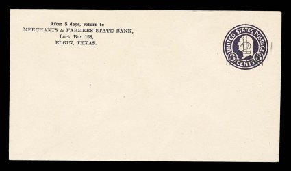 mint entire, with "Merchants & Farmers State Bank" printed corner card,