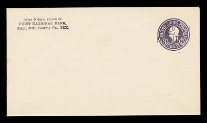 mint entire, with printed "First National Bank/Bastrop, Bastrop Co., Tex."