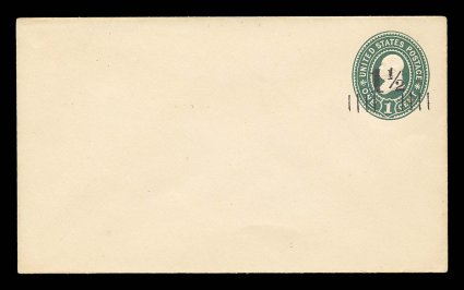 #U492a, 1 1/2c on 1c Green on oriental buff, die