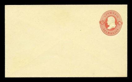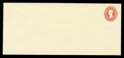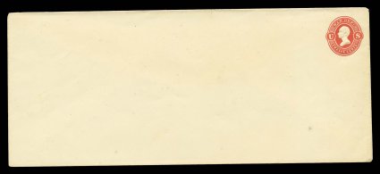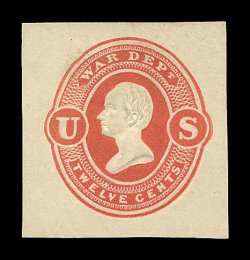 2268 ogc UO68 image#UO68, 30c Red War Dept. on amber, die WD17, size 21, knife 98, wmk. 2, pristine mint entire in the smaller of the two large sizes in which this comes, wonderfully fresh with bright colors, detailed embossing, extremely fine; a very scarce entire, particularly in this choice condition (UPSS #WD136). (Image) $2,400.00