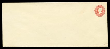 2266 ogc UO64 var. image#UO64 var., 15c Dark red War Dept. on white, die WD16, size 21, knife 98, wmk. 2, large mint entire in the smaller of the two sizes in which this envelope comes, fresh and clean, color is the dark red that is similar to the first issue Reay envelopes, long recognized and listed in UPSS and Thorp, minor mounting remnants on reverse, choice very fine; this is the scarcest variety of this Plimpton value and the first example we have had the pleasure to offer (UPSS #WD127a). (Image) $300.00+