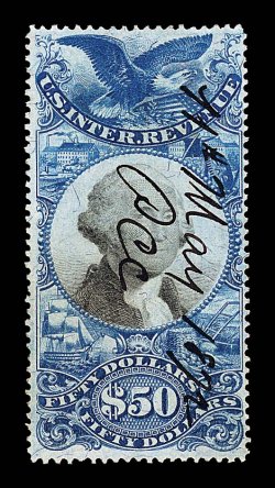 2294 O R131 image#R131, $50.00 Blue and black, deep rich colors and an unusually strong impression, neat 1872 ms. cancel, very fine; 1985 PF certificate. (Image) $500.00
