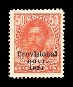 2327 og 72 image#72, 50c Red Provisional Govt. issue, striking jumbo mint single, possessing huge margins and being exceptionally well centered within them, brilliantly rich color, o.g., h.r., extremely fine. (Image) $60.00