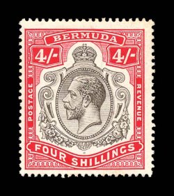 2397 og S.G. #52bb imageS.G. #52bb, 1920 4/- Black and carmine, broken crown and scroll, position 24, fresh mint single, deep strong colors, o.g., l.h., very fine (Scott #51 var.). (Image) £275