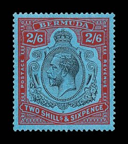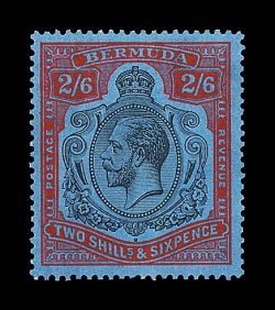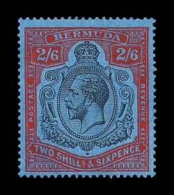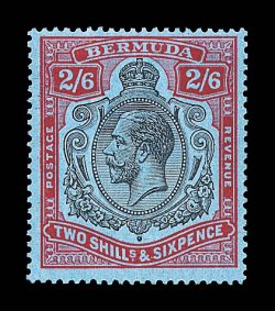 2434 og S.G. #89jb imageS.G. #89jb, 1931 2/6 Black and scarlet vermilion on deep blue, broken crown and scroll, position 24, attractive mint example with unretouched flaws showing well, deep colors, o.g., l.h., very fine (Scott #95b var.). (Image) £400