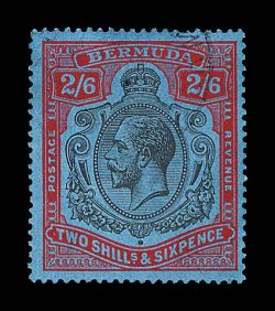2432 O S.G. #89h imageS.G. #89h, 1930 2/6 Grey black and pale orange vermilion on grey blue, a remarkably choice used example of this extremely rare printing, characteristic colors on strong grey blue paper, possessing a light centrally struck Hamilton double circle c.d.s., beautifully centered, extremely fine; this stamp is rare in any condition but it is particularly rare used, especially this nice; 1974 BPA certificate (Scott #95a; $2,250.00). (Image) £2,750