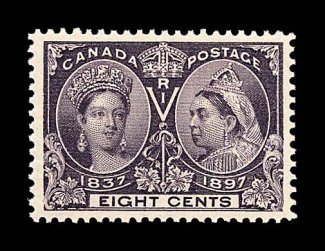 2586 nh 56 image#56, 1897 8c Jubilee, exceptionally well centered amid large margins, deeply rich color and a crisp detailed impression, o.g., n.h., extremely fine; 2002 PF certificate (Unitrade C$225.00). (Image) $105.00