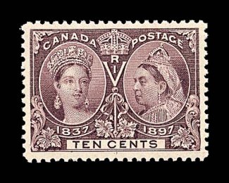 2587 nh 57 image#57, 1897 10c Jubilee, exceedingly well centered within large margins, bright fresh color, o.g, n.h., extremely fine; 2003 PF certificate (Unitrade C$450.00). (Image) $210.00