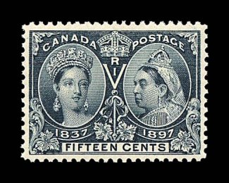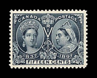 2589 nh 58 image#58, 1897 15c Jubilee, uncharacteristically well centered, deep color and an intense impression on fresh paper, o.g., n.h., extremely fine; 2003 PF certificate (Untirade C$900.00). (Image) $450.00
