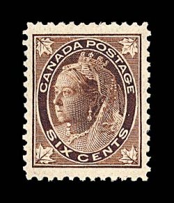 2594 nh 71 image#71, 1897 6c Brown "Maple Leaf", extraordinarily well centered within exceptionally large margins, rich color, o.g., n.h., extremely fine; a select mint example; 2003 PF certificate (Unitrade C$300.00). (Image) $160.00