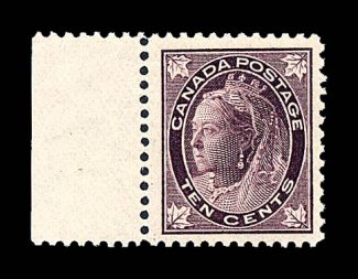 2596 nh 73 image#73, 1898 10c Brown violet "Maple Leaf", left sheet-margin single, very well centered within unusually large margins, strong rich color, o.g., never hinged, extremely fine; 1994 Greene Foundation certificate (Unitrade C$900.00). (Image) $525.00