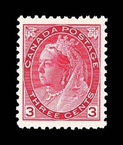 2599 nh 78 image#78, 1898 3c Carmine "Numeral", outstanding centering within large margins, bright and fresh, o.g., n.h., extremely fine and quite choice (Unitrade C$180.00). (Image) $82.50