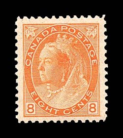 2602 nh 82 image#82, 1898 8c Orange "Numeral", a visually striking mint single, possessing exceptionally vivid color and impression, uniformly huge balanced margins all around, o.g., n.h., extremely fine; seldom seen in this gem never hinged condition; 2001 PF certificate (Unitrade C$600.00). (Image) $275.00