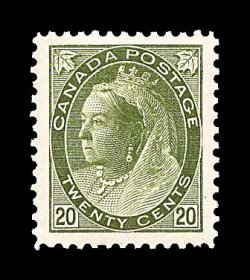 2604 nh 84 image#84, 1900 20c Olive green "Numeral", a superlative mint single, being fabulously well centered within extravagantly large margins, plus its color is incredibly rich while its impression is razor sharp on bright white paper, o.g, never hinged, extremely fine gem; an absolutely gorgeous stamp; 2000 Greene Foundation certificate (Unitrade C$1,800.00). (Image) $925.00