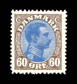 2642 nh 123a image#123a, 1921 60o Brown and ultramarine, extremely fresh example of the scarce 1921 printing in ultramarine instead of the normal blue, o.g., n.h., extremely fine (Facit #156b). (Image) $350.00