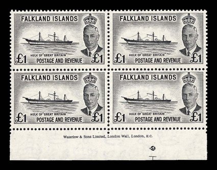 2649 nhbl 107-20 image#107-20, 1952 1/2p-£1 Scenes cplt. in bottom margin imprint blocks of four, o.g., n.h., one 2p stamp with small spot, very fine set (S.G. #172-85; £560+). (Image) $484.00+